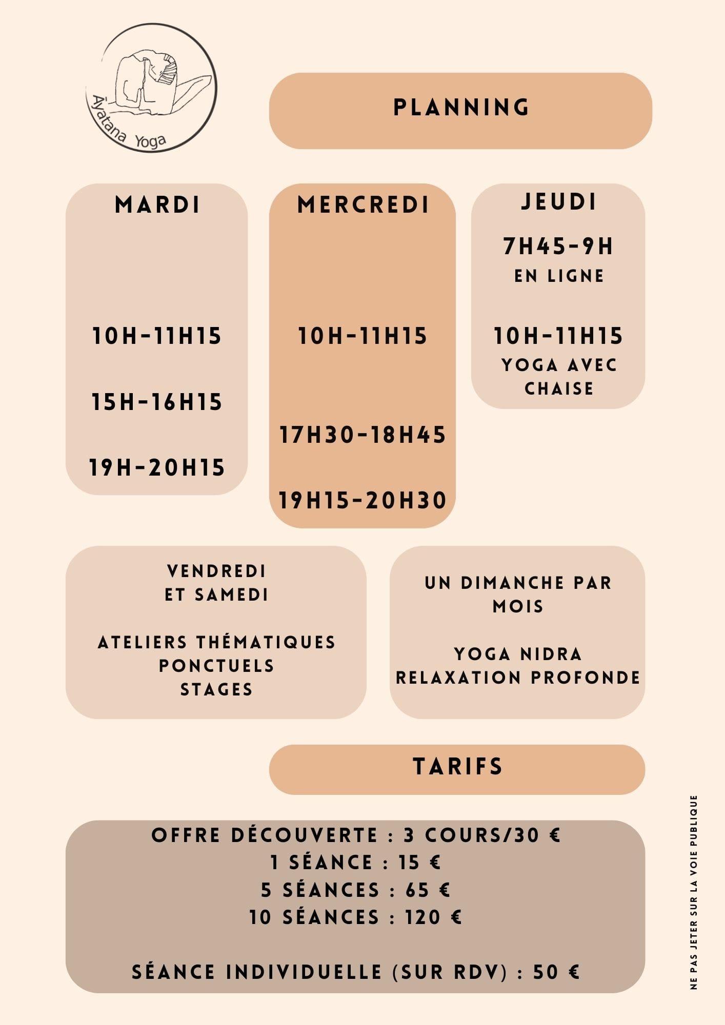 Horaires : Mardi de 20h à 21h30 ; Vendredi 18h